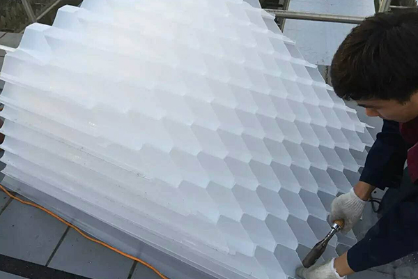 ? ? ? ? 二、蜂窩斜管分油法:蜂窩斜管分油法是將除油池在同一過水斷面上分成若干小格,各自越小,則其分流效果越好,但格子太小易產生阻管現象,所以常用邊長為35、50、80mm的正六邊形等規格斜管。廢水進入廢水池時,含油廢水緩慢上升時,因為油和水的密度有差異,而使得油水逐漸分離。綠源凈水的蜂窩斜管填料耐腐蝕,不沾油,光潔度好,常用材質是聚酯玻璃鋼、乙丙共聚(PP)。