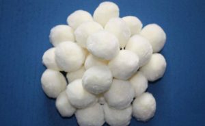 ◆改性纖維的質量標準中捆扎強度是一個重要指標,有的廠家生產的纖維球指標較低,丘陵污水處理裝置的過濾器曾使用ф0.2mm的纖維絲,吊0.3kg重物無脫落現(xiàn)象的纖維球,使用一個月后,纖維球大量散開.形成棉絮塊,堵塞篩網(wǎng)又不易清洗,只能更換。后改用ф0.lmm的纖維絲吊05kg重物無脫落現(xiàn)象的纖維球纖維球無散開現(xiàn)象,只有脫絲現(xiàn)象。